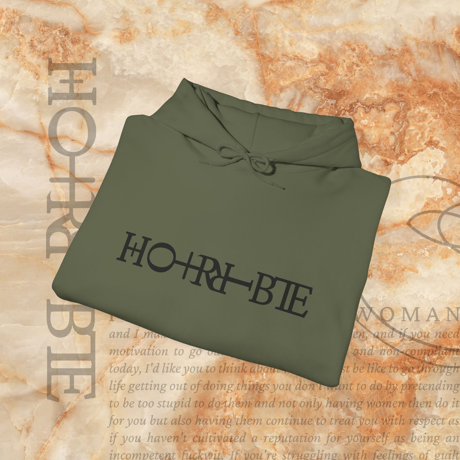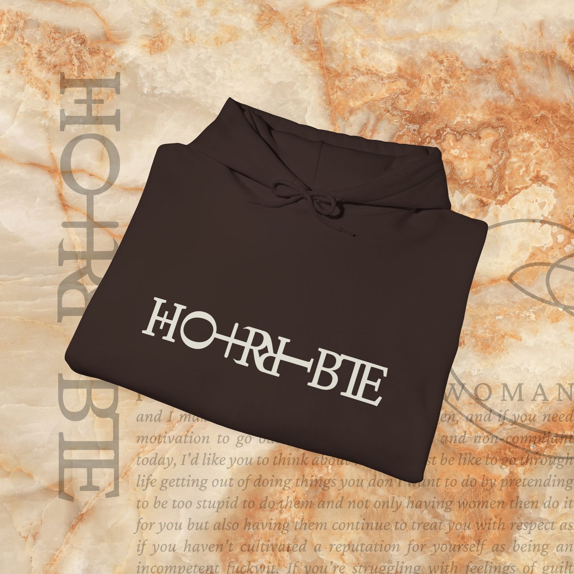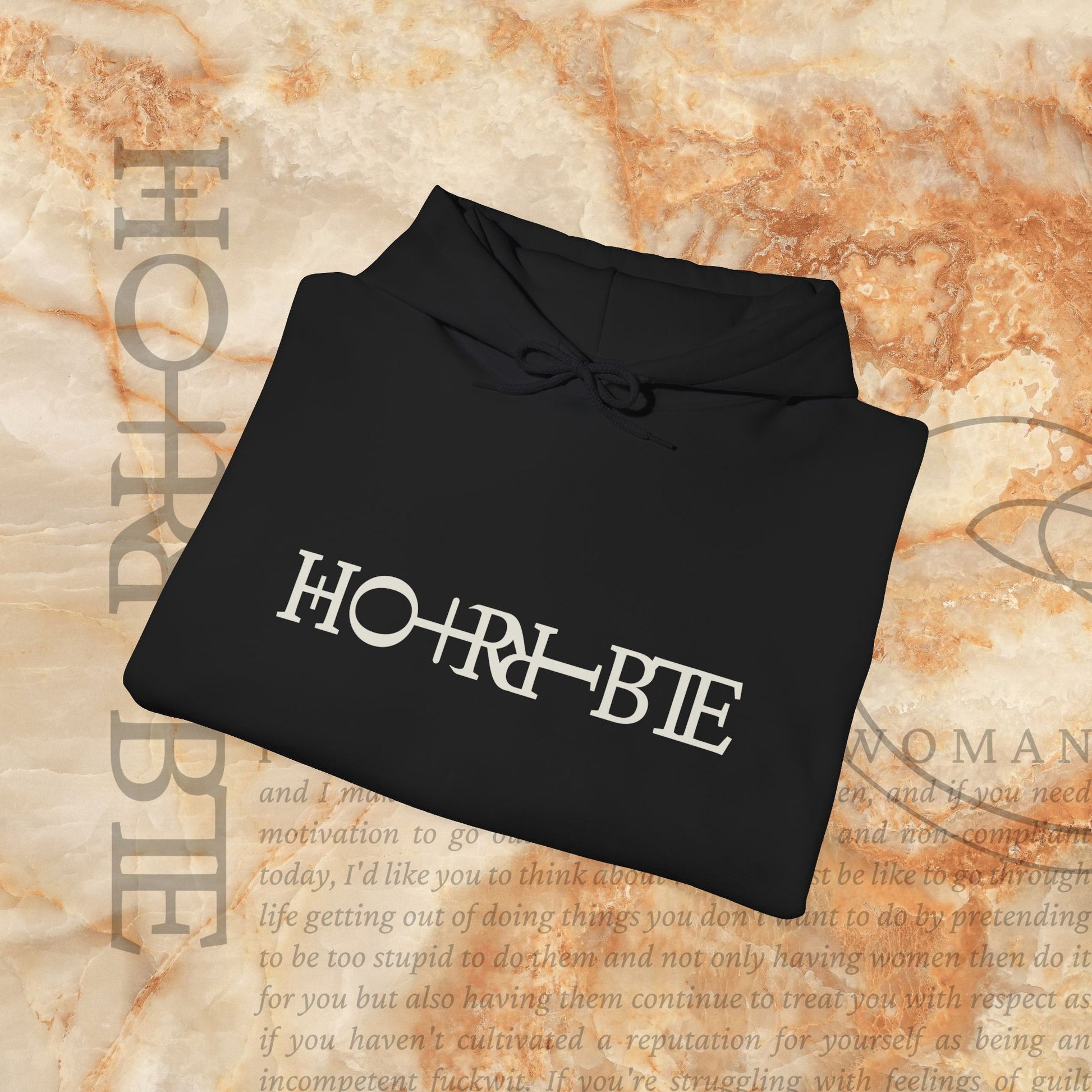 Design description: The "Cryptically Horrible" logo goes vertical and mysterious, with each letter of “CRYPTIC” stacked on top of each other, with the “O” turned into a Venus symbol representing “female” or “woman”. The arrangement is abstract, bold, and slightly occult.