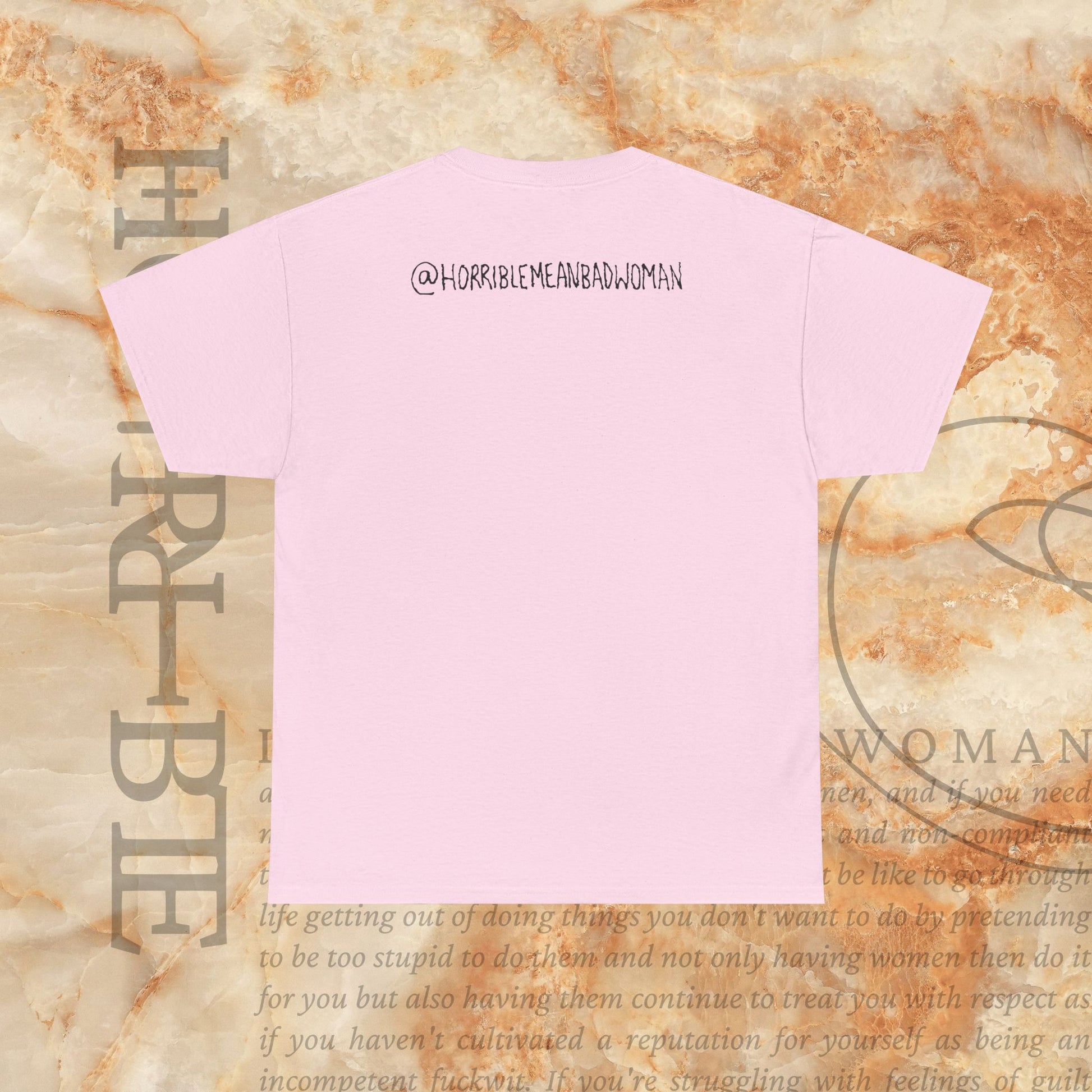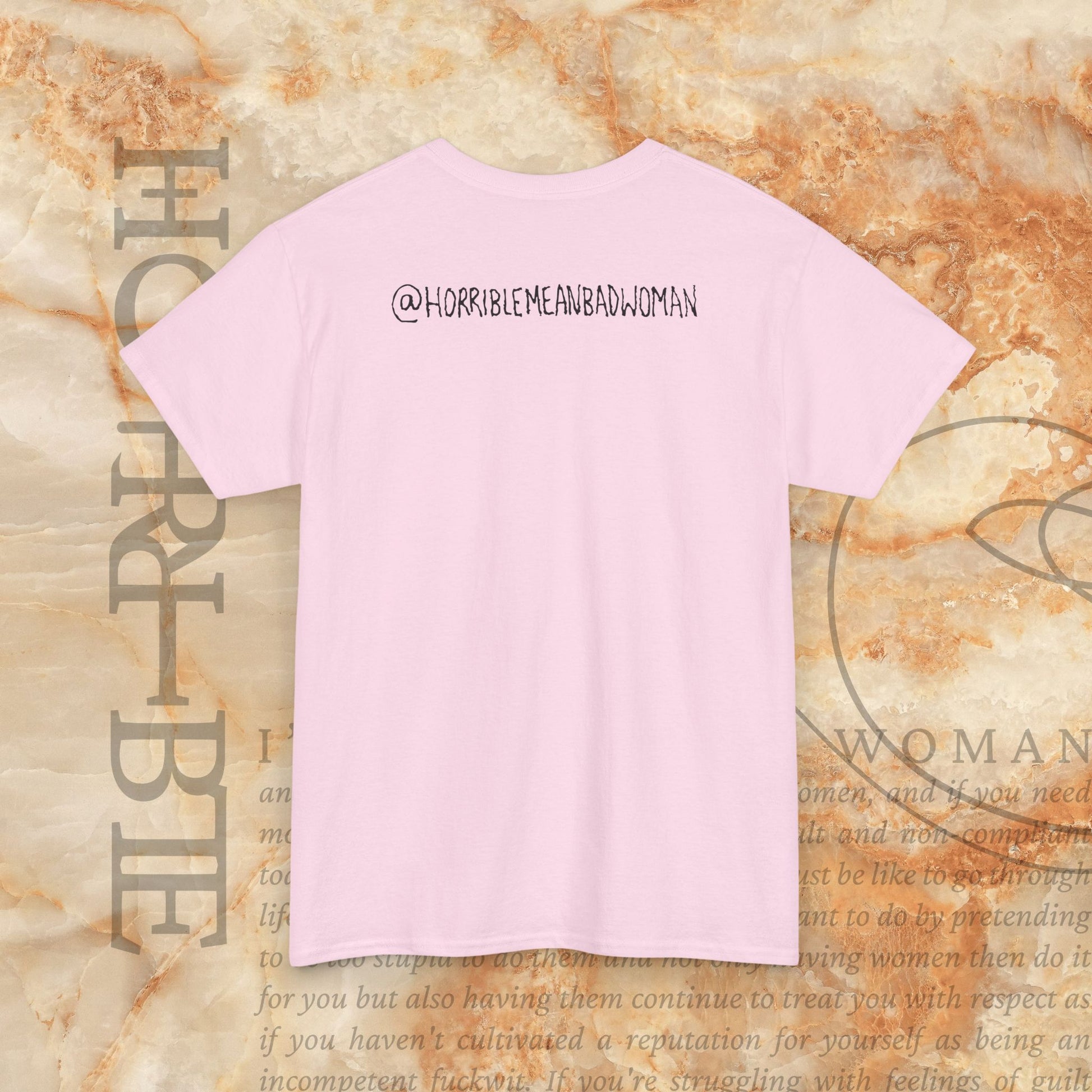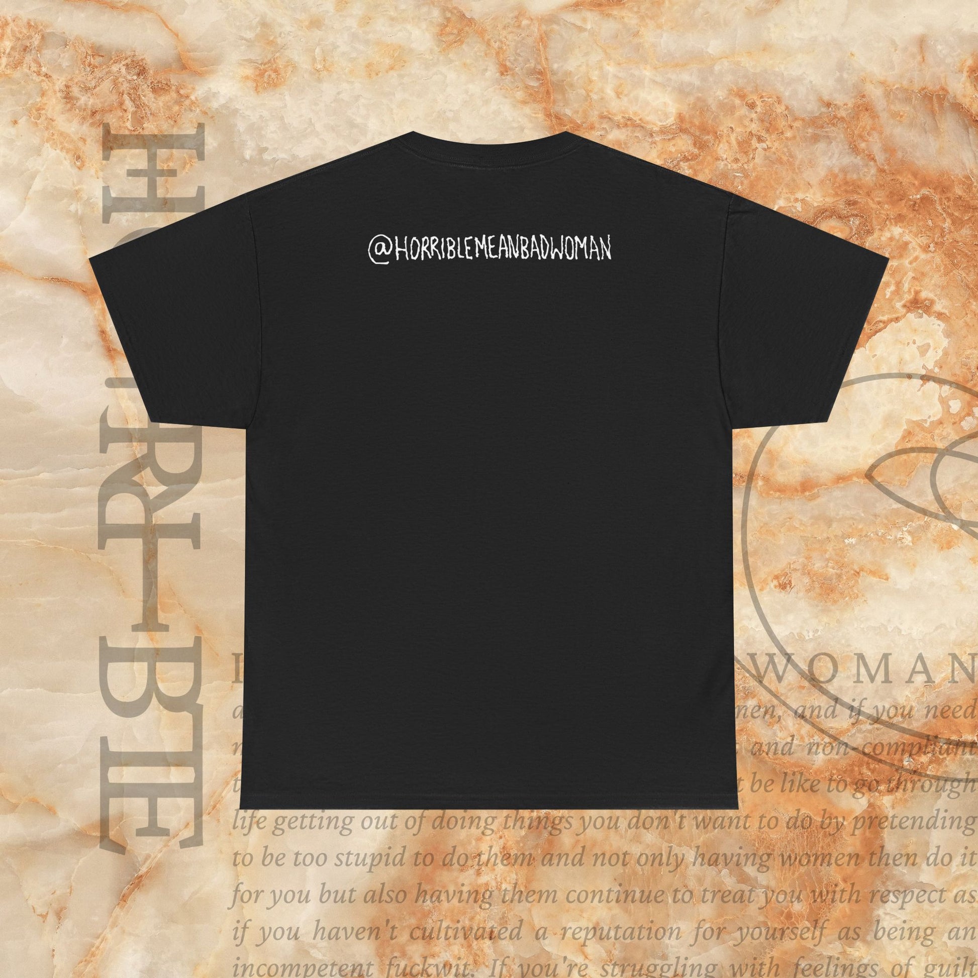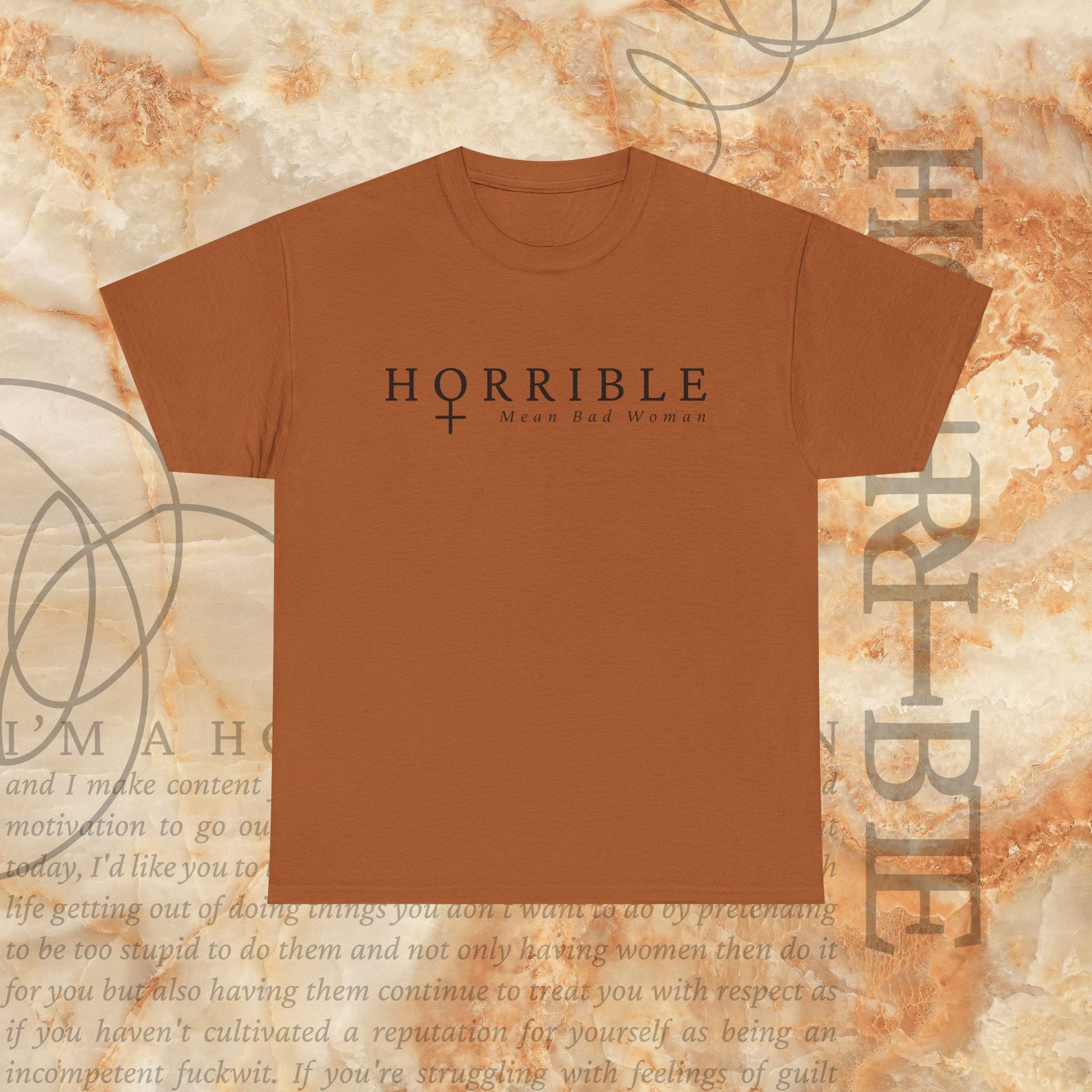 The straight to the point, original and iconic Horrible Mean Bad Woman logo on a tee that's easy to wear through all seasons, and super durable for many Horrible Activities.