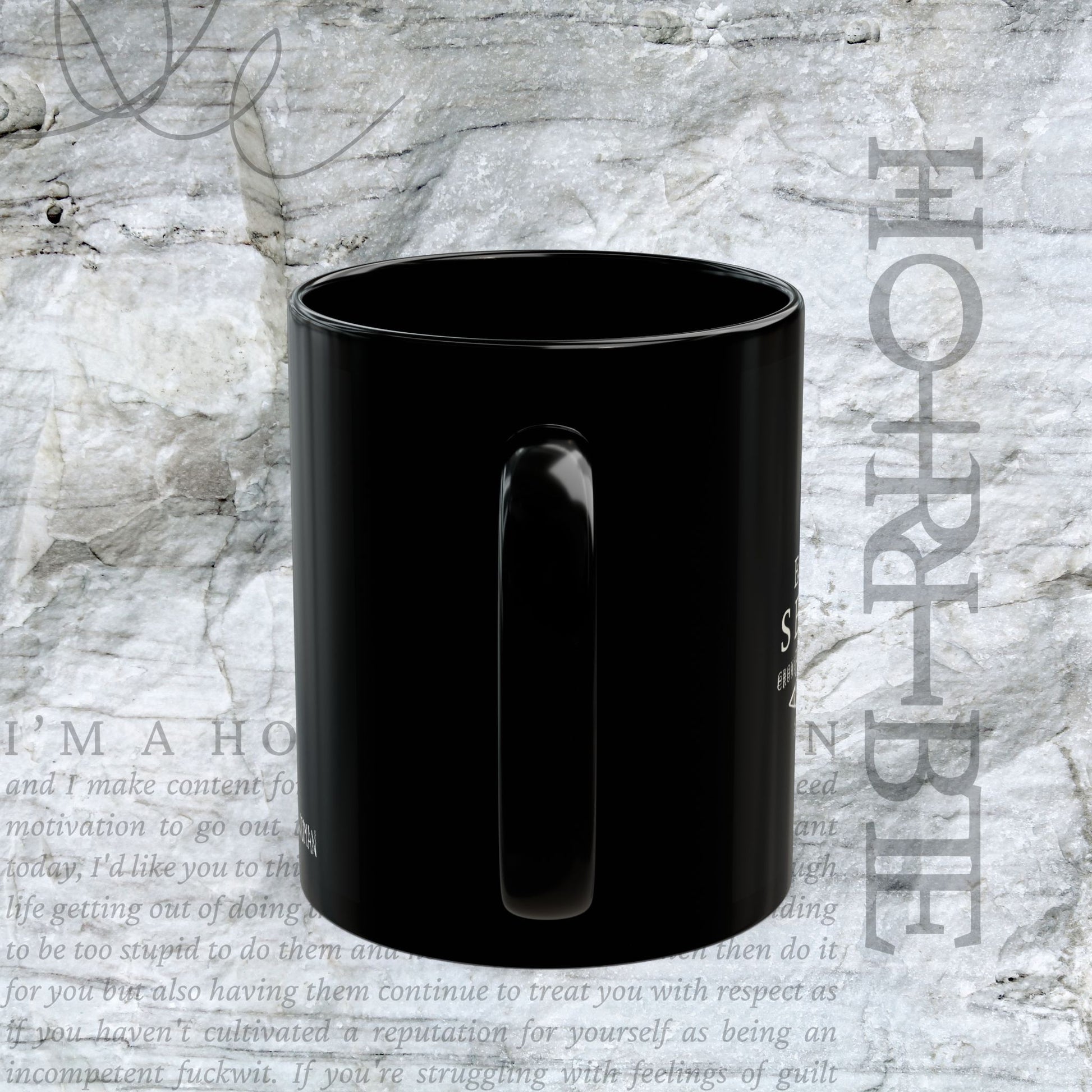 Design description: Crone. Noun. An ‘ugly’, evil-looking old woman.The Seasoned Crone design is a witchy, overlapping word map with the labels “SEASONED CRONE” and “HORRIBLE” in all sorts of directions. The black text swirls (and sometimes stretches or bends) creating a jumble of letters that feels spell bound and non-symmetrical.